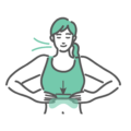 セルフケア・マッサージ腹式呼吸、ドローイン、体幹トレーニング、インナーマッスル強化など、ダイエットやストレス対策に役立つ呼吸法における**「息を吐く」**動作を表現したイラストです。エクササイズ指導、ヨガ、ピラティス、健康増進の解説資料に幅広くご使用ください。