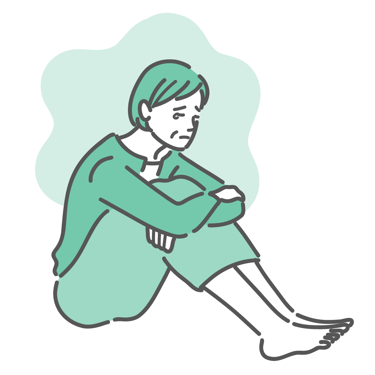 抑うつ、情緒不安定、無気力、倦怠感、更年期障害、PMS、自律神経失調症など、幅広い精神的な不調を表現したイラストです。メンタルヘルスケア、心理カウンセリング、ストレス対策などの解説資料に幅広くご使用ください。