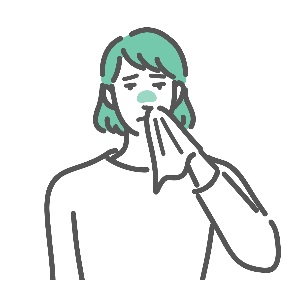 季節・アレルギー症状 花粉症(アレルギー)による鼻水・鼻づまりで鼻をかむ女性のイラスト