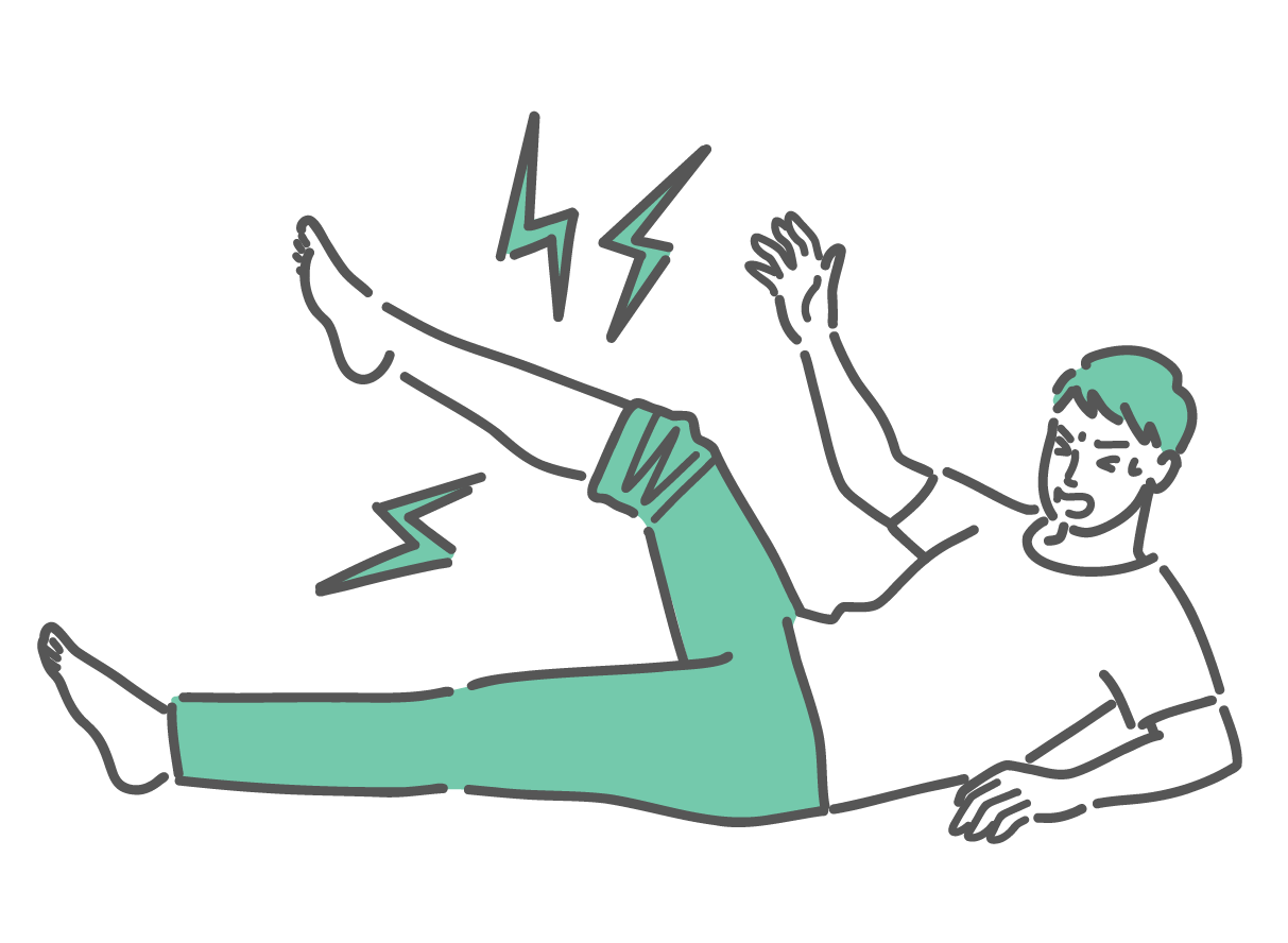 季節・アレルギー症状 熱中症・脱水症状による足の痙攣(熱けいれん・こむら返り)で苦しむ男性のイラスト