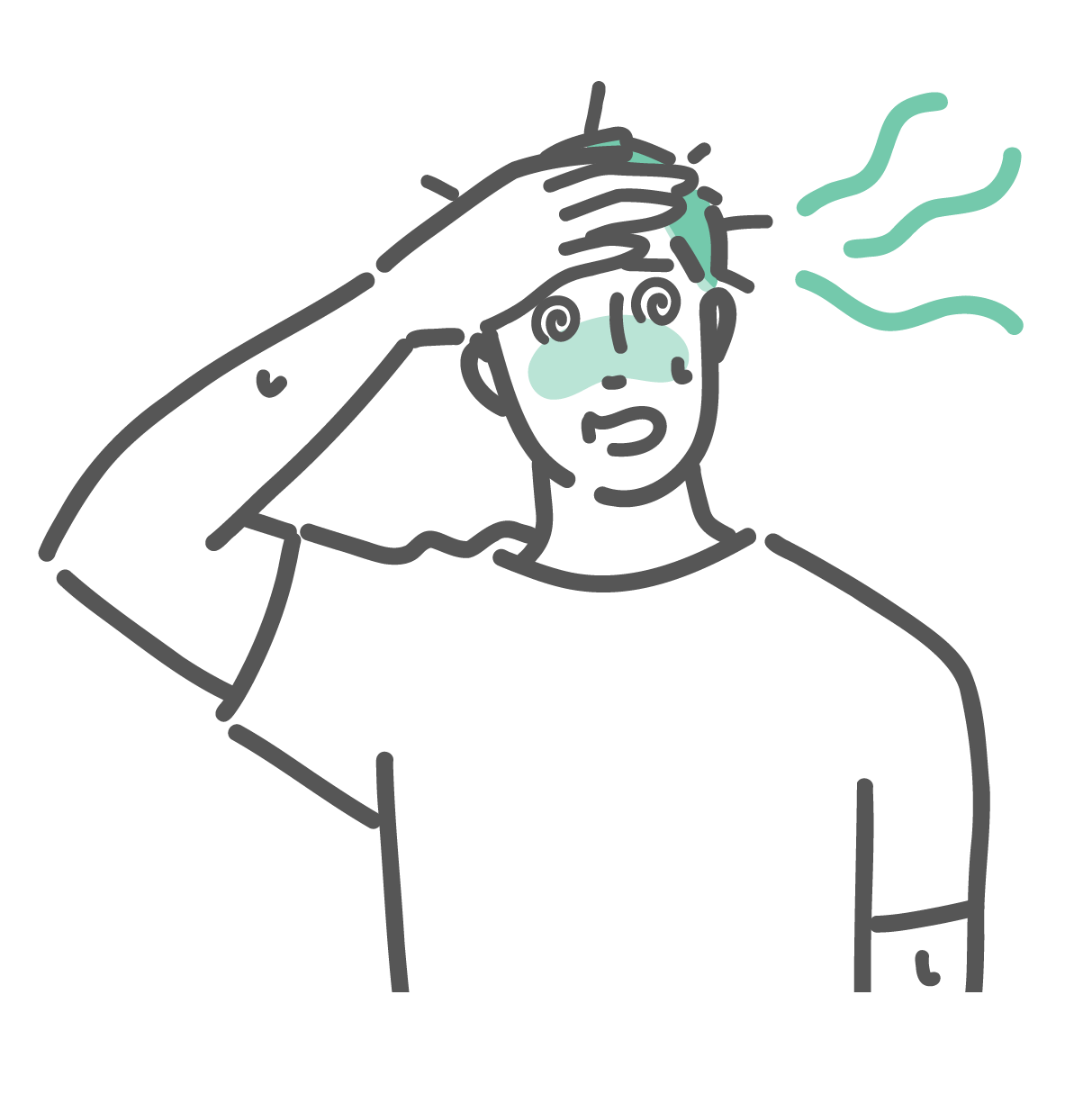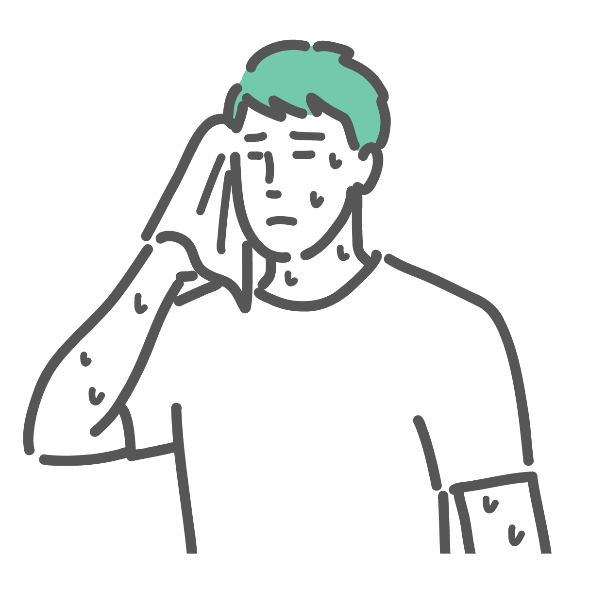 季節・アレルギー症状 熱中症・脱水症状による大量の発汗(汗をかく)で疲弊する男性のイラスト