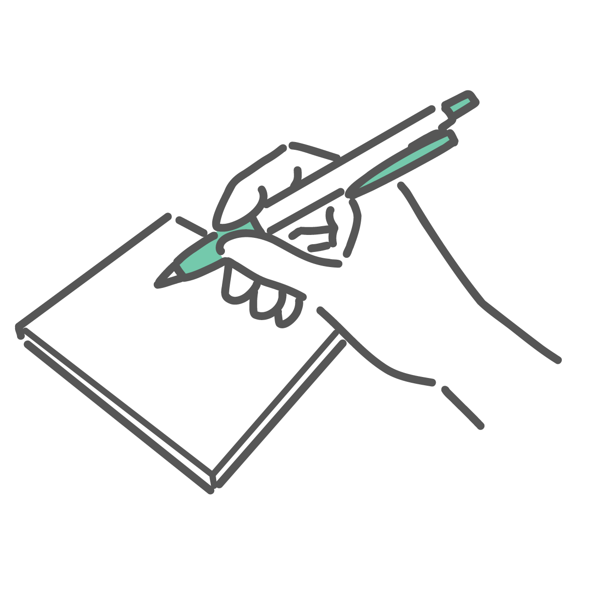 生活習慣 健康管理のためペンを持ちメモ(記録)を取る手のイラスト
