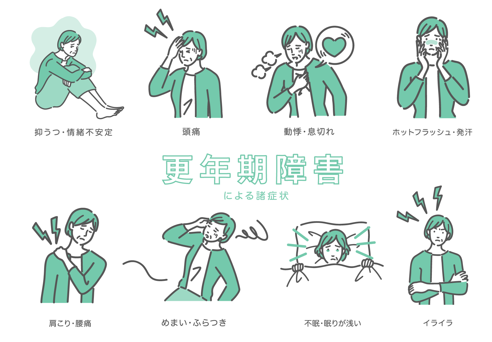 うつ・メンタル不調 更年期障害による諸症状(一覧)イラストセット