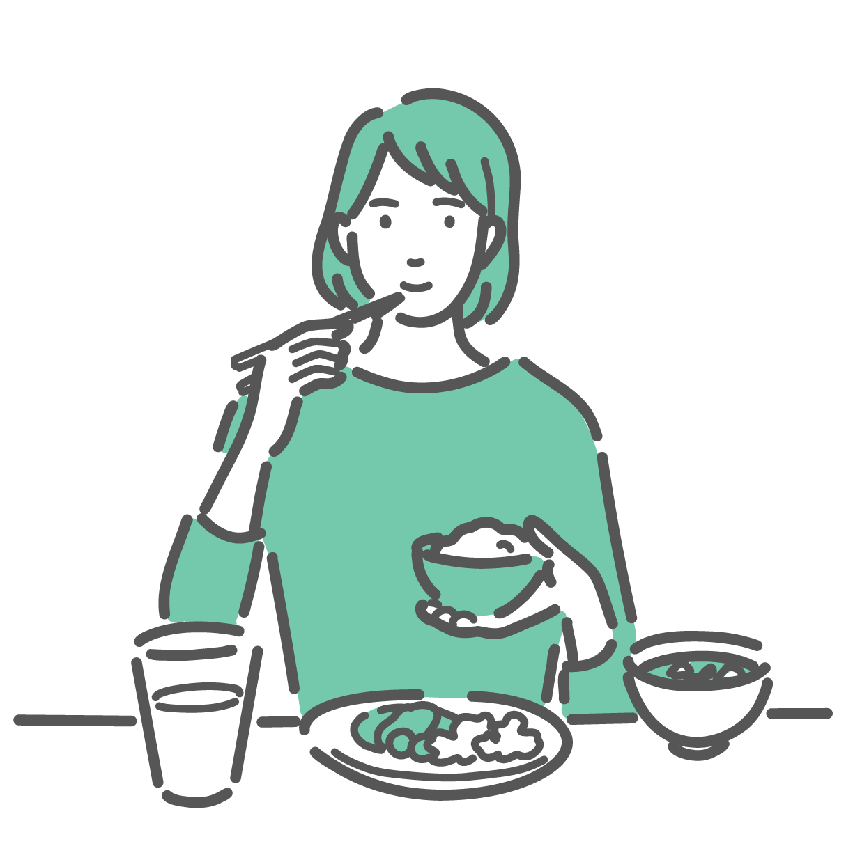 バランスの取れた和食(定食)を食べる女性のイラスト