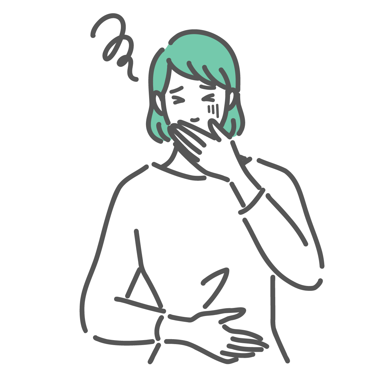 うつ・メンタル不調 吐き気や胃の不調で口元を押さえる女性