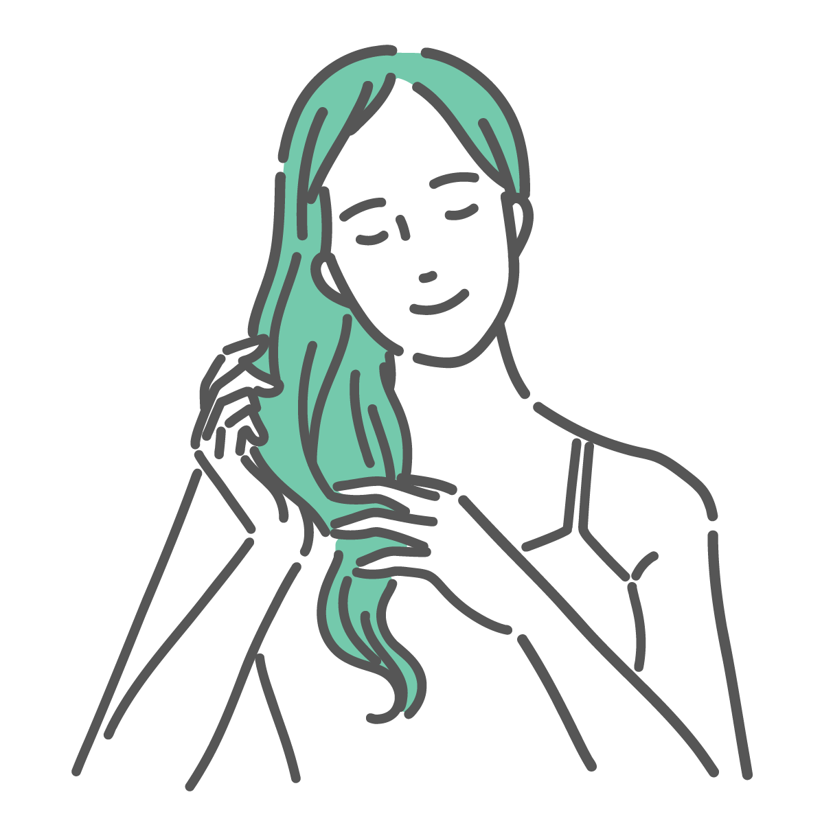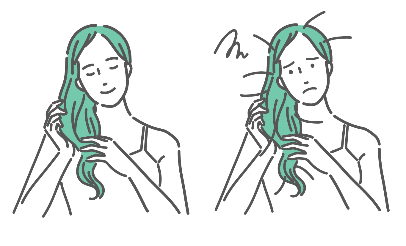 セルフケア・マッサージ 髪の健康状態を比較する女性のイラスト(ビフォーアフター・悩みと解決)