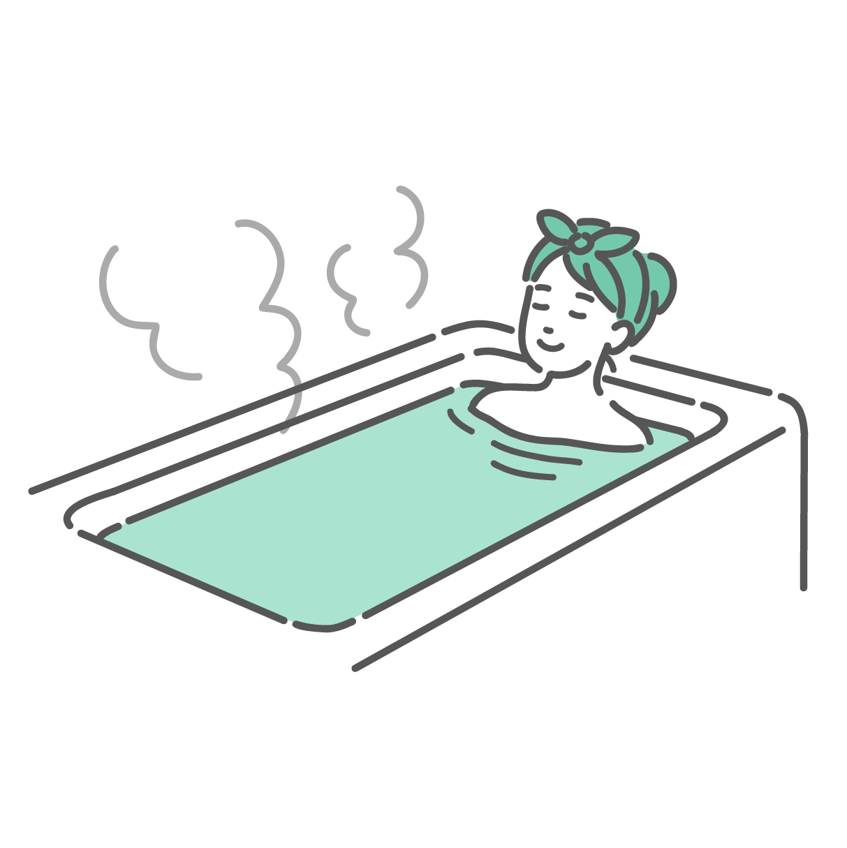 セルフケア・マッサージ 湯船に浸かってリラックスする女性のイラスト(入浴・温活)
